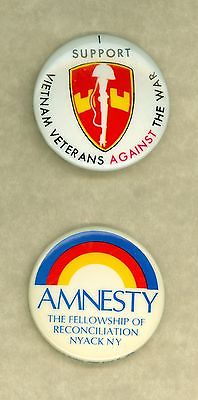 2 Vintage 1970s Support Vietnam Veterans Against The War Amnesty Pinback Buttons
