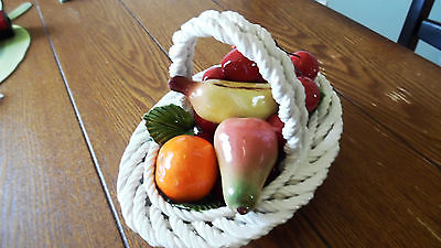 Vtg CAPODIMONTE Small Ceramic Woven Fruit Basket Banana Orange Cherries