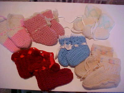 6 Pair Vintage/Antique Wool Dolly & Baby Booties