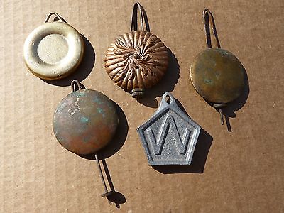 5 CLOCK PENDULUMS, FOR ANTIQUE SHELF CLOCKS. ALL DIFFERENT, ALL UNIQUE