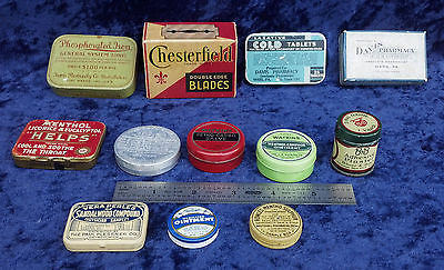 12 COLLECTIBLE ANTIQUE DRUG STORE TINS&PAPER WATKINS IODEX MARS,PA.(MUST SEE)