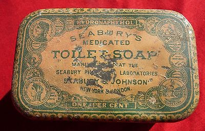 Vintage Tin metal box Toilet Soap Seaburys Early 1900's antique