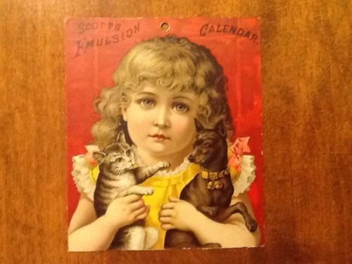 Title (ebay affiliate link): Scott's Emulsion Antique Victorian Trade Card Calendar Girl Cat & Dog 1887 Cod