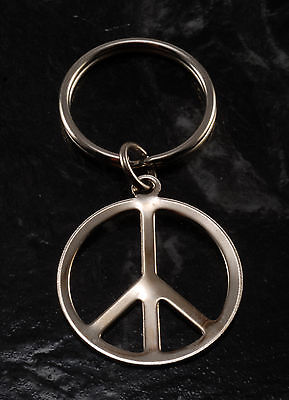 VINTAGE SILVER TONE STEEL PEACE SIGN THIN METAL KEY CHAIN NEW OLD STOCK