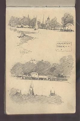 Early 1900s Edwardian Sketchbook Journal Album Old Pt Virginia Potomac Mt Vernon