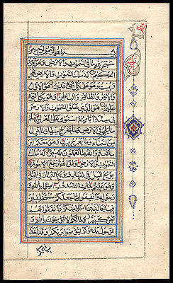 1820 Gold Illuminated Koran Leaf Gold Sura Border Medallion India Kashmir Islam