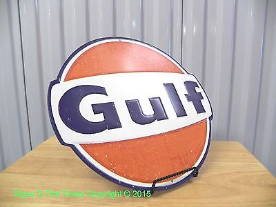 Gulf Oil Company Gasoline 3D Metal Deco Chevy Ford Mopar USA Race Fuel Hemi Gas