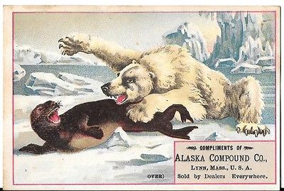 Title (ebay affiliate link): Trade Card Alaska Compound Co. Lynn MA 1880s Polar Bear / Seal