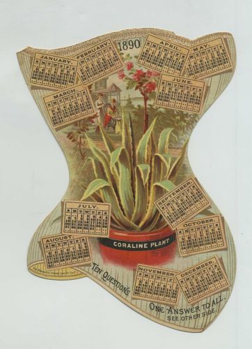 Title (ebay affiliate link): 1890 Calendar Die Cut Advertising Trade Card Dr Warner Coraline Corsets vg6220