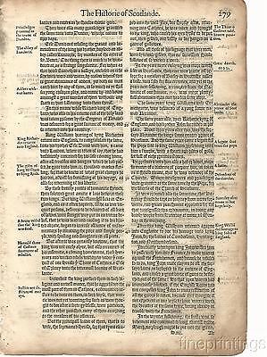 1577 LEAF FROM HOLINSHED CHRONICLES OF SCOTLAND