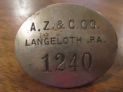 American Zinc and Chemical Co Coal Mining Badge #1240