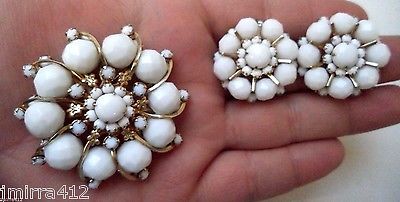 Title (ebay affiliate link): STUNNING VINTAGE SIGNED WEISS MILK GLASS BEADED FLOWER BROOCH EARRING SET!! 457L