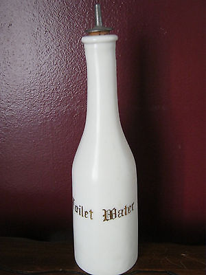 Antique Vintage Barber Shop Toilet Water Bottle White Milk Glass with Topper