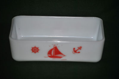 Mckee Depression Refrigerator Milk Glass Dish Red Sailboats Nautical