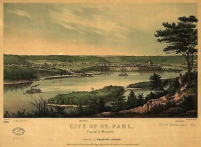Title (ebay affiliate link): 1853 St. Paul Minnesota City USA America bird's eye view Antique Map Postcard
