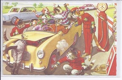 Title (ebay affiliate link): CATS, ALFRED MAINZER CARD NO. 4966 FROM BELIGUM-GAS HER UP" VINTAGE POSTCARD