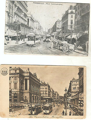 Marseilles - Rue Cannebiere - 2 vintage post cards