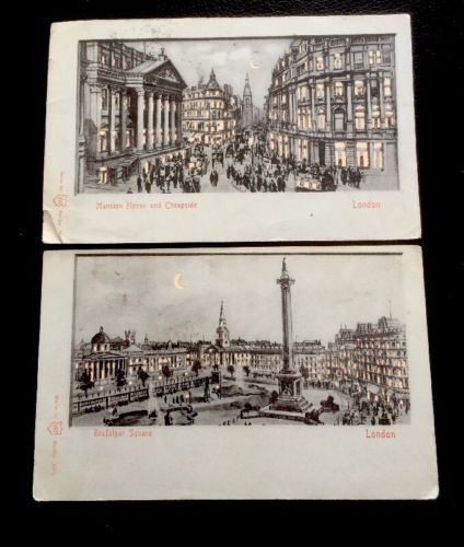 Title (ebay affiliate link): Mansion House And Cheapside & Tragalgar Square, London, WH Berlin Postcards