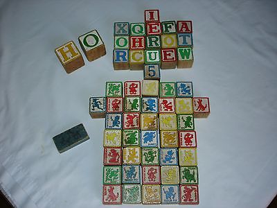 Vintage Wooden Children's Blocks Toys - 54 Blocks