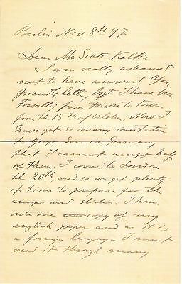 Letter from Sven Hedin to Scott Keltie after his first major expedition 1897