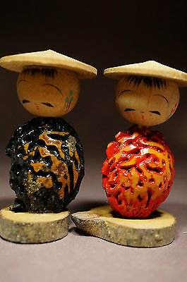 kissako 3069 Japanese Antique Wooden Doll Walnut KOKESHI Vintage Figure Pair