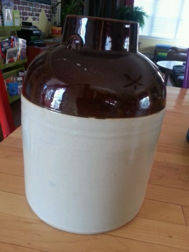 Stoneware Crock 1 Gallon? Brown White Vintage Dark Brown Glaze
