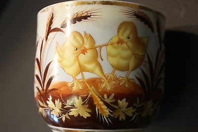 ANTIQUE HAND PAINTED GERMAN MUSTACHE CUP BABY CHICKS & WHEAT
