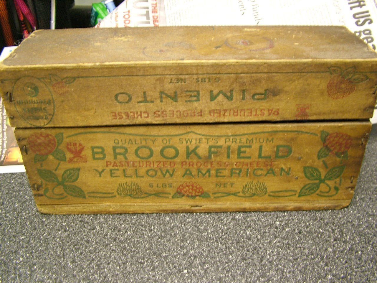 Primitive Vintage Swift's Brookfield Wooden Cheese Boxes-NRA Logo-Cobbler's Box