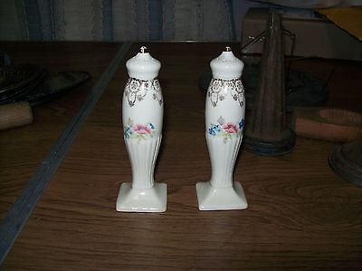 Antique/Vintage LaMode China Salt & Pepper Shakers Tall Tapered w/Roses EUC