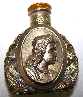 VINTAGE CZECH PERFUME BOTTLE - CITRIN glass with LADY CAMEO