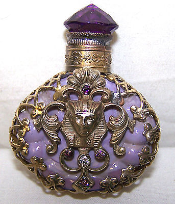 VINTAGE CZECH PERFUME BOTTLE - LILAC PURPLE glass with RAM'S HEAD