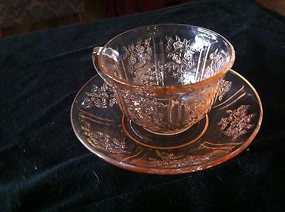 5 Federal Sharon Cabbage Rose Cup and saucer Pink Depression Glass