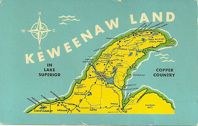 Title (ebay affiliate link): VINTAGE 1958 POSTCARD - KEWEENAW LAND - MICHIGAN'S COPPER COUNTRY (MAP) MI