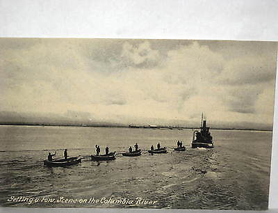 Title (ebay affiliate link): 1910 POSTCARD SETTING A ROW ON THE COLUMBIA RIVER, TUG BOAT & 5 SMALL BOATS