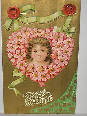Title (ebay affiliate link): 1910 POSTCARD TO MY VALENTINE, GIRL IN PINK FLORAL HEART