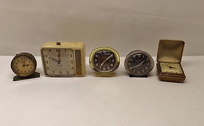 Vintage Antique Lot 5 Windup Alarm Clocks Westclox Baby Ben Ingraham Florn Parts