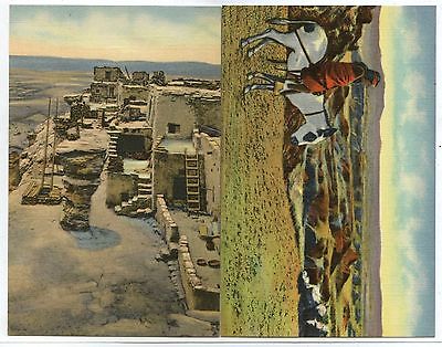 2 Linen, Hopi Indians AZ, "Snake Alter-Walpi & Hopi and Burro at Painted Desert"