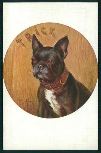 art Martin Kavel French Bulldog portrait dog original old c1910s postcard