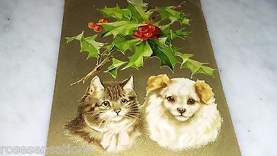 undivided back VINTAGE OLD Holiday Christmas postcard CUTE CAT DOG kitten pup