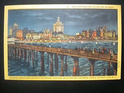 LINEN POSTCARD VIEW OF MILLION DOLLAR PIER BY NIGHT, ATLANTIC CITY, NJ, 1930'S