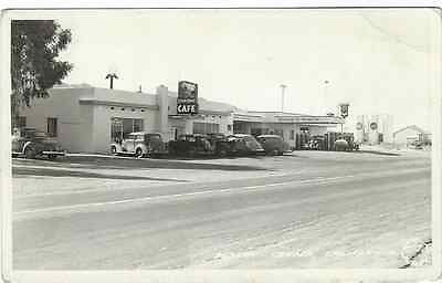 Title (ebay affiliate link): Real Photo Postcard Desert Center, CA Classic Cars Gas Station 1940 Cafe