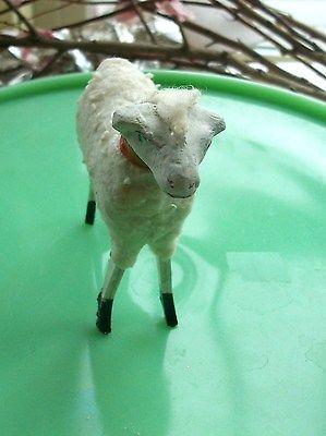 Title (ebay affiliate link): Vintage German Christmas Putz Wooly Sheep with Stick Legs Antique Large 4"