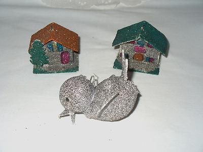 Vintage Putz Cottage Christmas Ornaments+ Bird-Japan