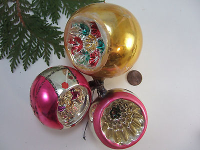 3 Antique Vintage Mercury Glass Fancy Indent Ornament-Poland