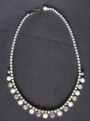 VTG MILK GLASS AURORA BOREALIS RHINESTONE NECKLACE 20"