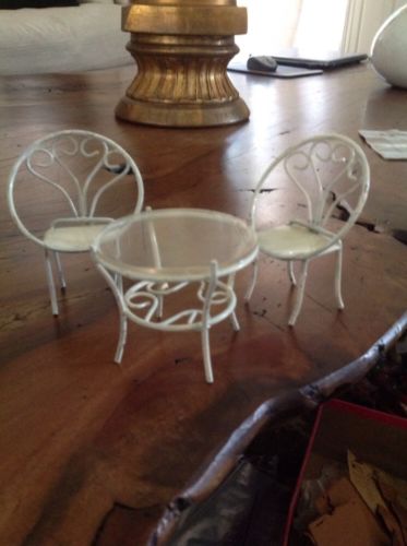 Vtg Antique Dollhouse White Iron Patio Miniature Table Retro Chairs Furniture