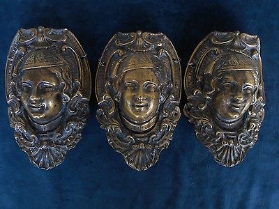 Title (ebay affiliate link): 3 Antique Brass Face Architectural or Furniture Ornaments~fireplace hardware ?