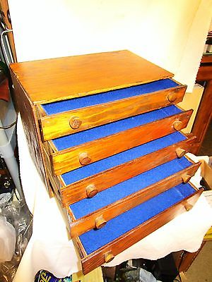 Vtg Wood Storage Box Chest Cabinet 5 Drawers Sm Tools Trinket Jewelry Primitive