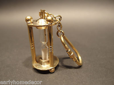 Vintage Antique Style Brass Sand Timer Hour glass Key Chain