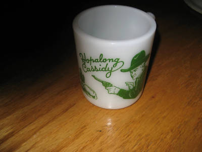 GREEN VINTAGE HOPALONG CASSIDY CHILDS MILK GLASS MUG